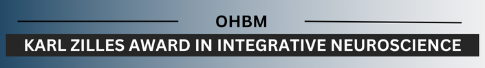 The Karl Zilles Award recognizes a PhD student or a postdoctoral fellow for their work in integrating modern neuroanatomical approaches with multi-modal in-vivo neuroimaging. The recipient will receive a cash award of $2,500 USD along with an engraved plaque.